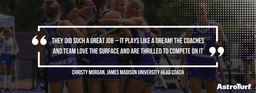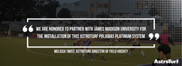 “I’m so pleased and excited about the installation of the AstroTurf Poligras Platinum system,” said Christy Morgan, Head Coach at James Madison University. “They did such a great job – it plays like a dream! The coaches and team love the surface and are thrilled to train and compete on it. We are incredibly thankful for AstroTurf’s commitment to creating a high-quality surface for the game of field hockey!”