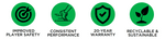 | Cons: | Most pads are made overseas (freight and lead times more problematic) · Ball bounce properties not superior · Energy restitution properties not ideal · Inherently less shock absorbent than beaded polypropylene |