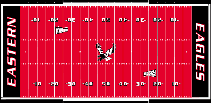 The Inferno design will include the Eagle at the 50-yard line and the words ‘Eastern Eagles’ in the end zones. The design was finalized after the Eagle Athletic Fund ran a fundraiser for the field, inviting Eagles fans to vote on their favorite look.