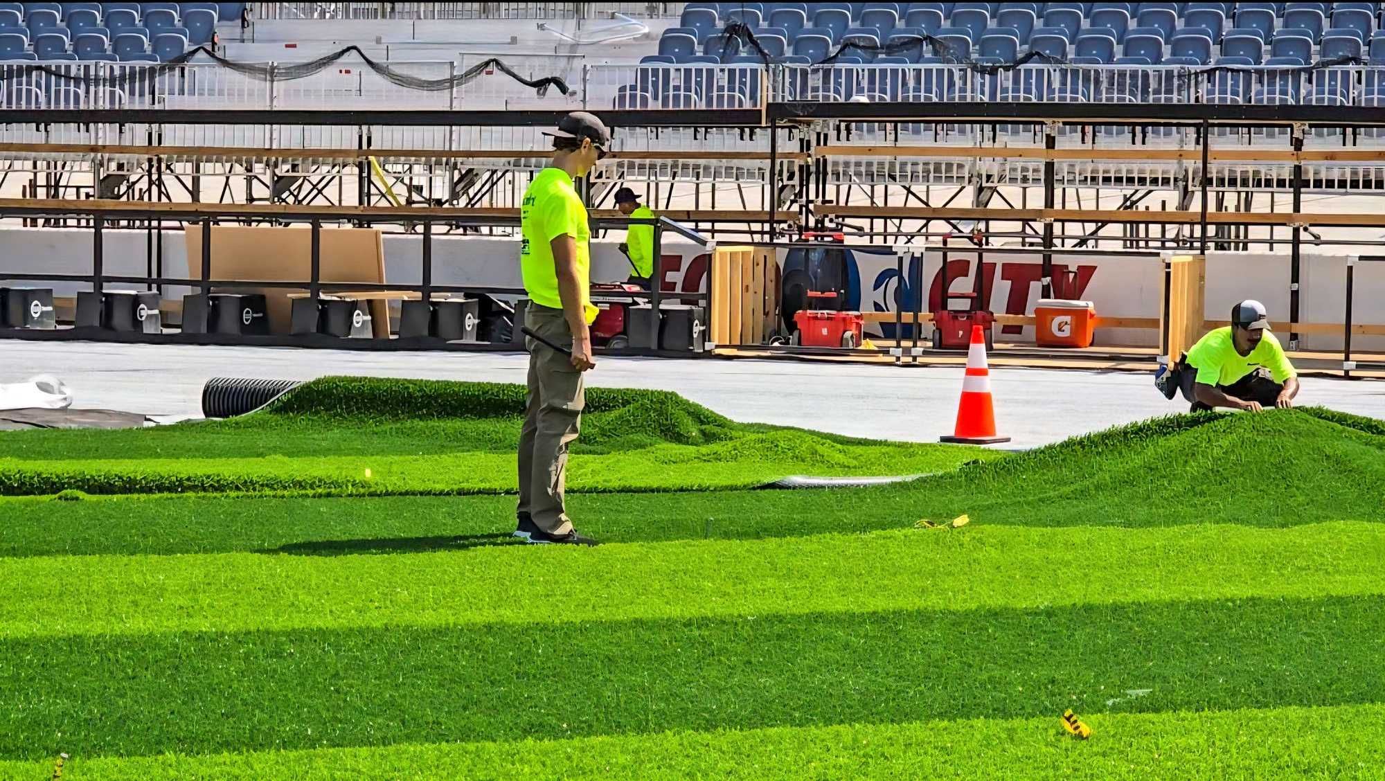 MLB required a playing surface that met strict standards for speed, ball bounce, and player safety, identical to a permanent field.